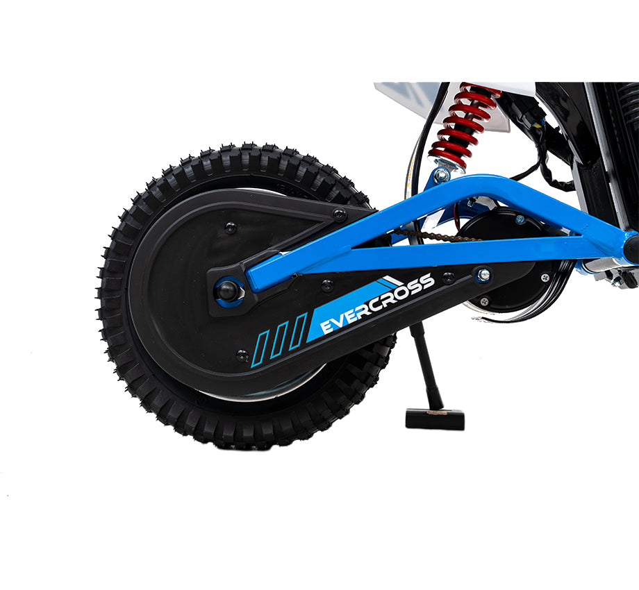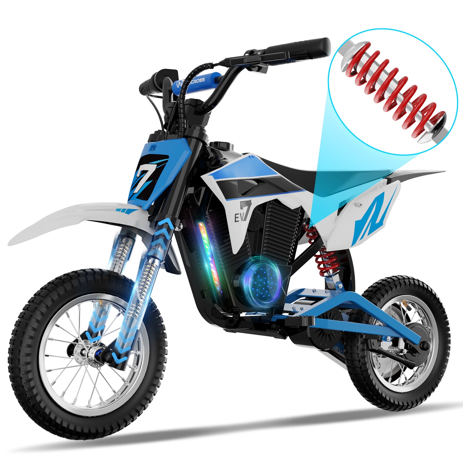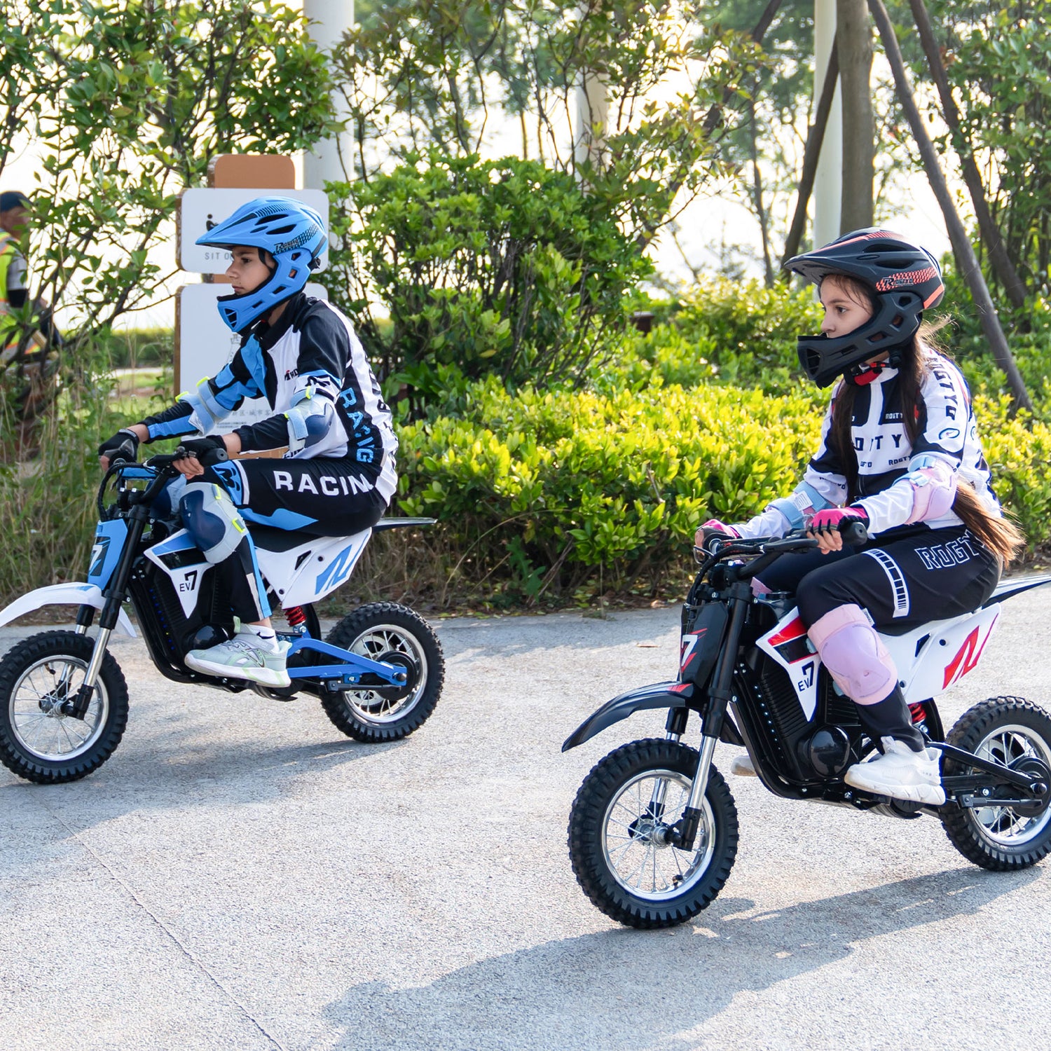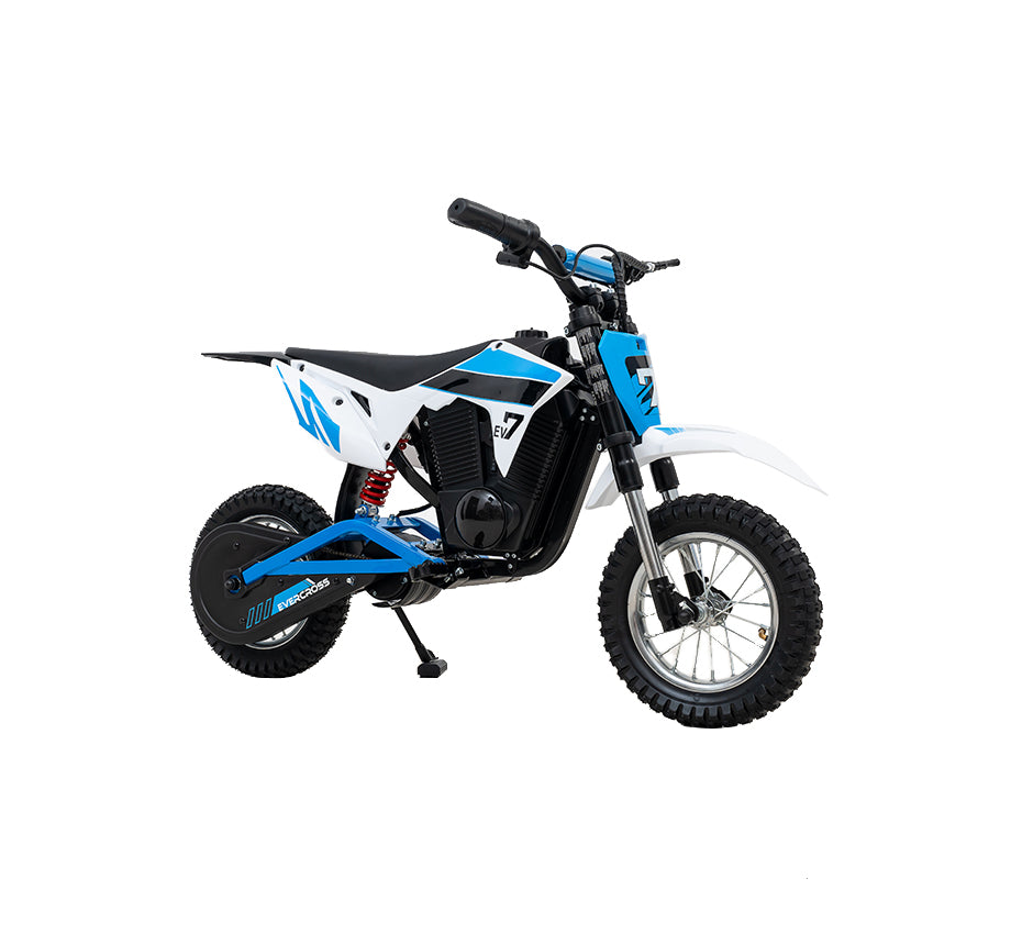 The EVERCROSS EV12M PRO children's electric motorcycle has a 300 W motor and a 36 V 4 Ah battery with up to 25 km/h. Three driving modes (9 / 12 / 25 km/h) adapt to the age and ability of the children