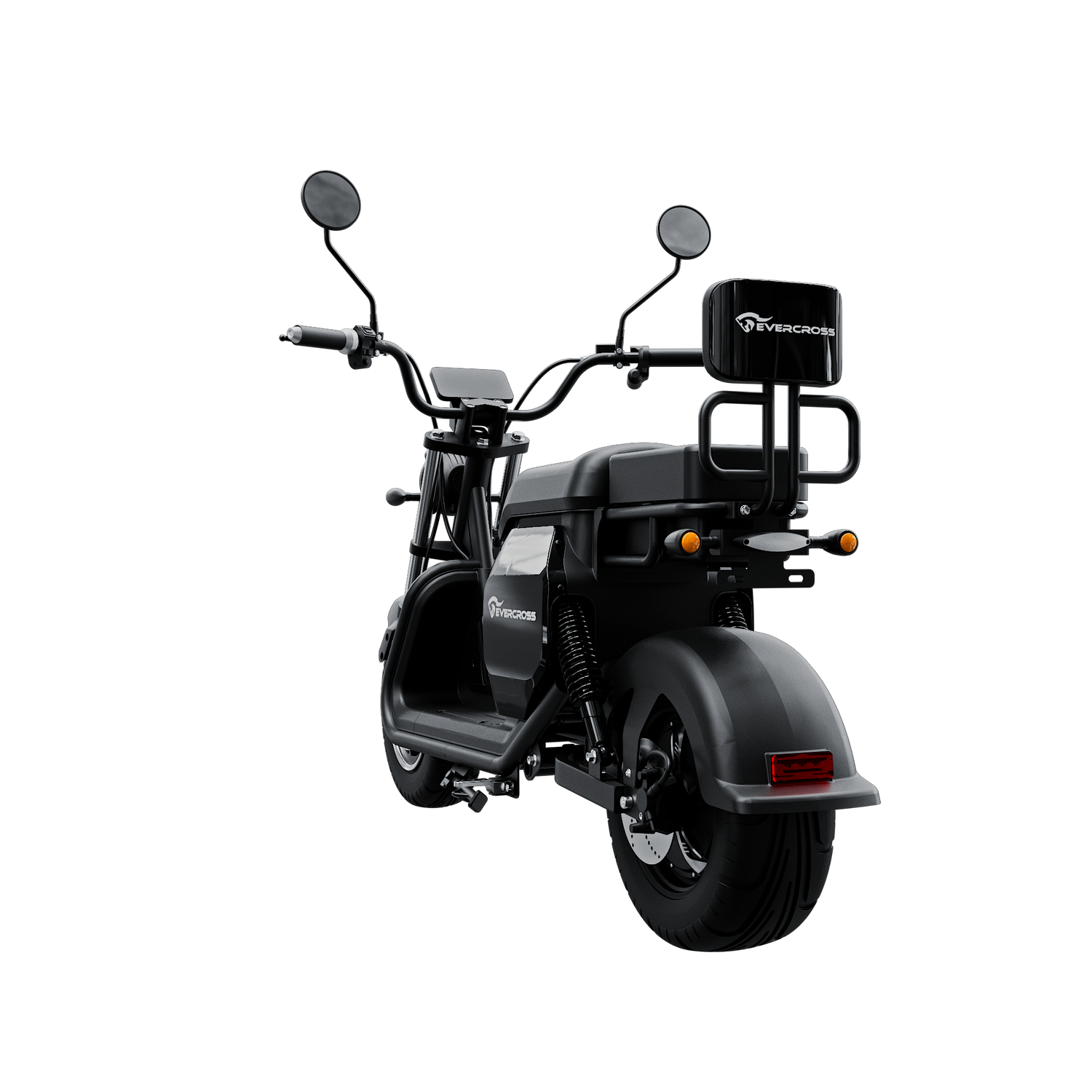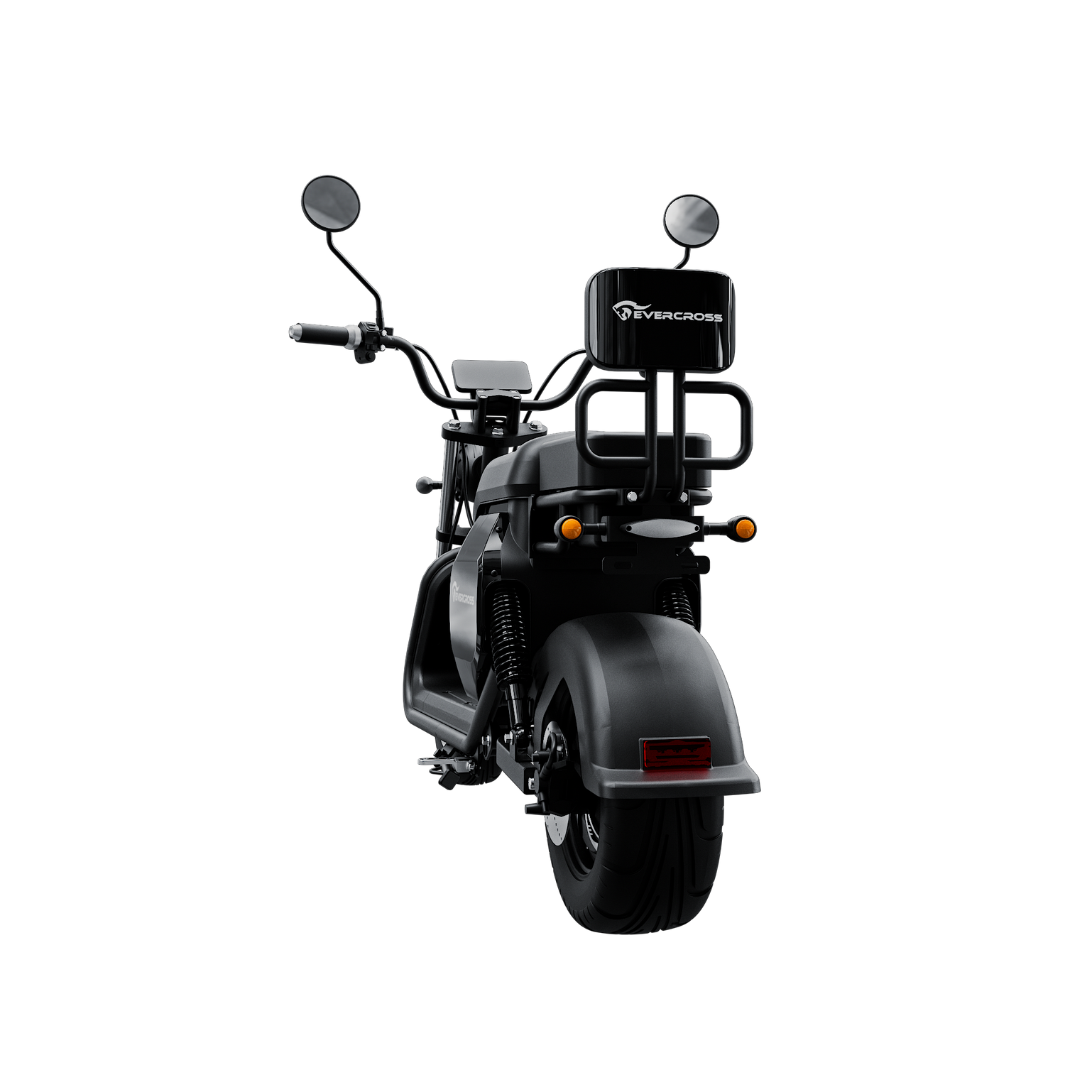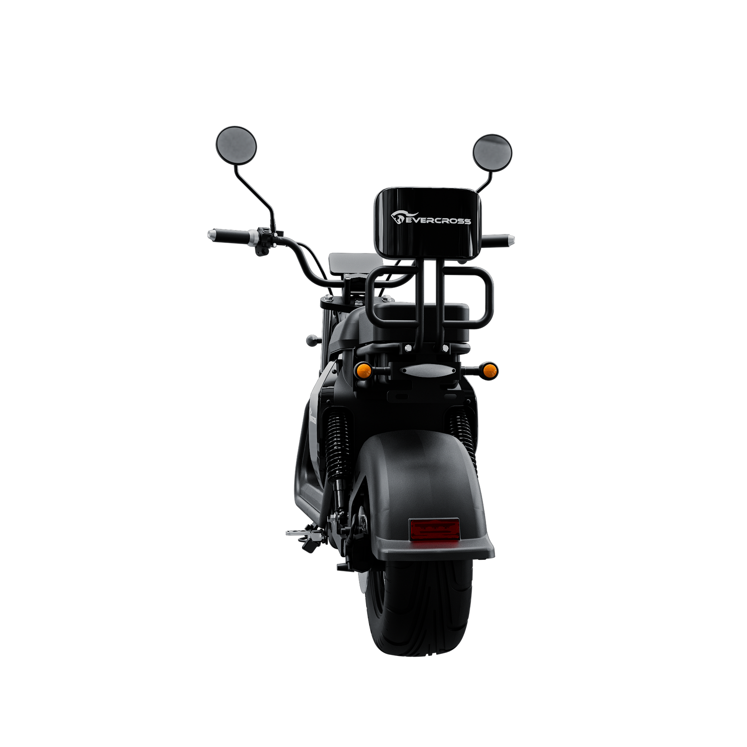 Das EVERCROSS 702 E-Motorroller kombiniert stilvolles Chopper-Design mit modernen Funktionen. Die breiten Reifen sorgen nicht nur für ein ruhiges und stabiles Fahrerlebnis, sondern auch für zusätzliche Aufmerksamkeit auf der Straße. Der hohe Lenker, der bequem gepolsterte Sitz, die Rückenlehne und breite Fußstützen bieten maximalen Komfort für Fahrer und Beifahrer.