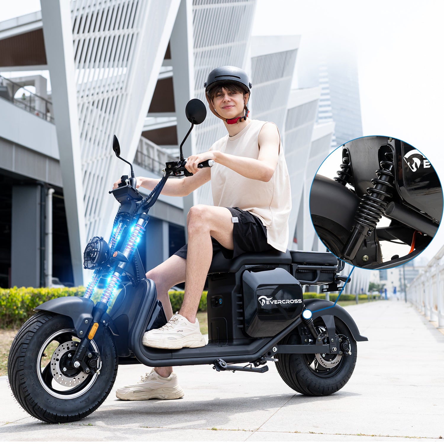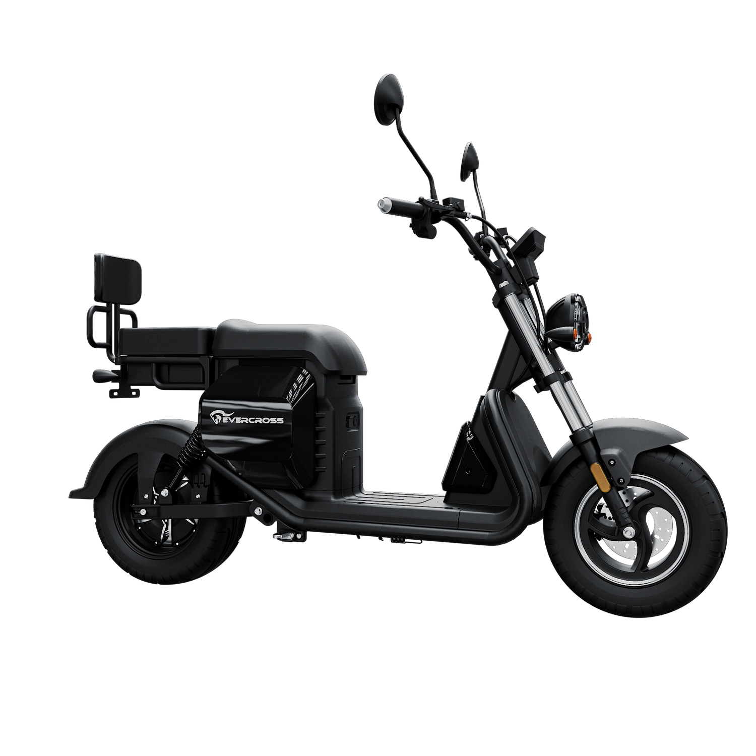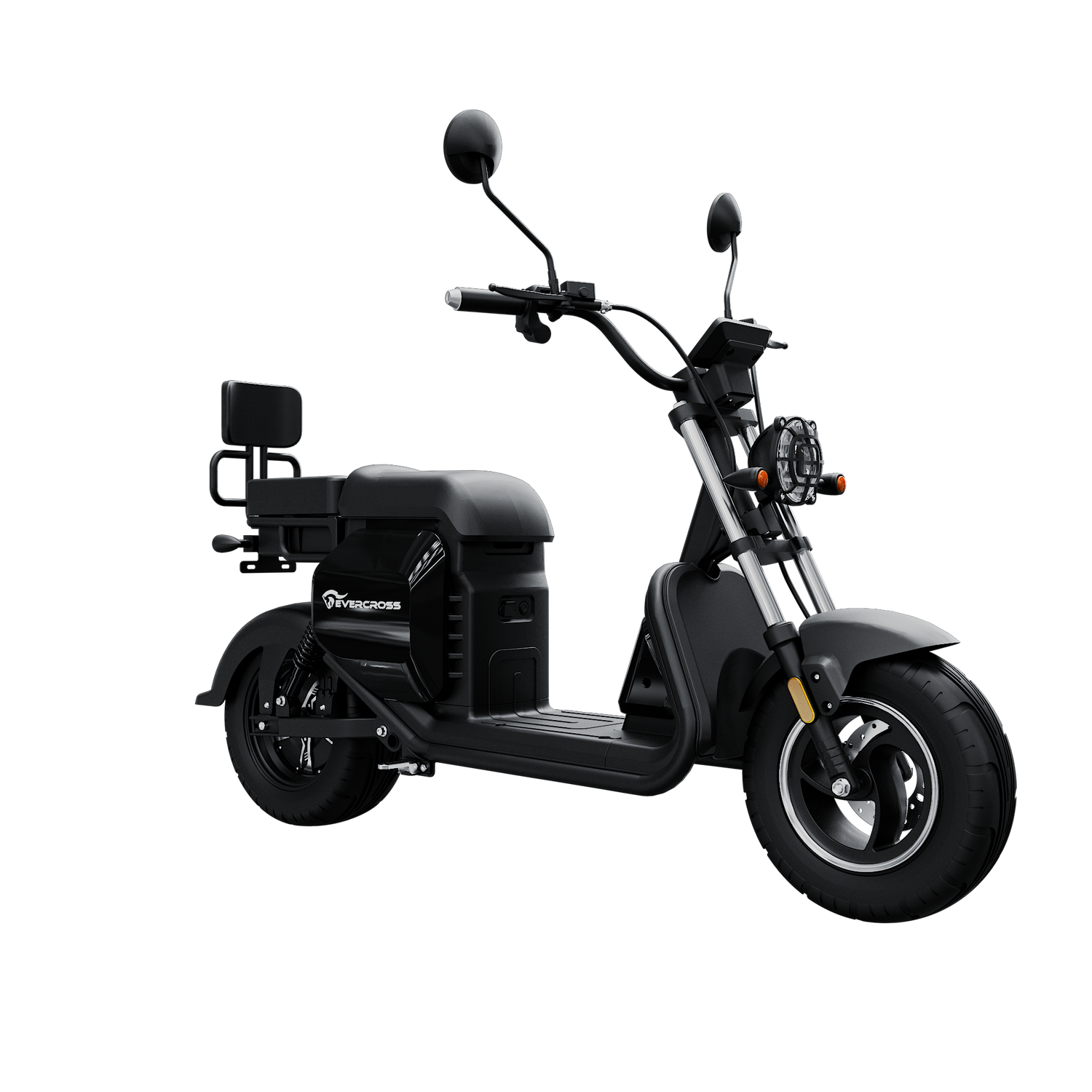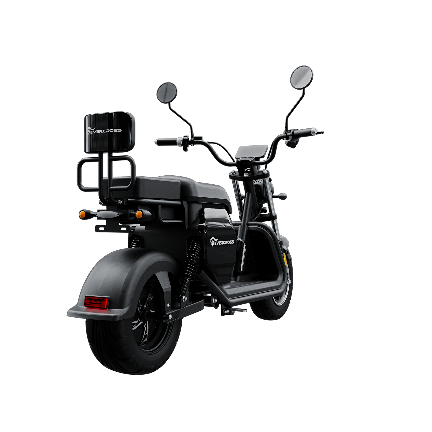 Das EVERCROSS 702 E-Motorroller kombiniert stilvolles Chopper-Design mit modernen Funktionen. Die breiten Reifen sorgen nicht nur für ein ruhiges und stabiles Fahrerlebnis, sondern auch für zusätzliche Aufmerksamkeit auf der Straße. Der hohe Lenker, der bequem gepolsterte Sitz, die Rückenlehne und breite Fußstützen bieten maximalen Komfort für Fahrer und Beifahrer.