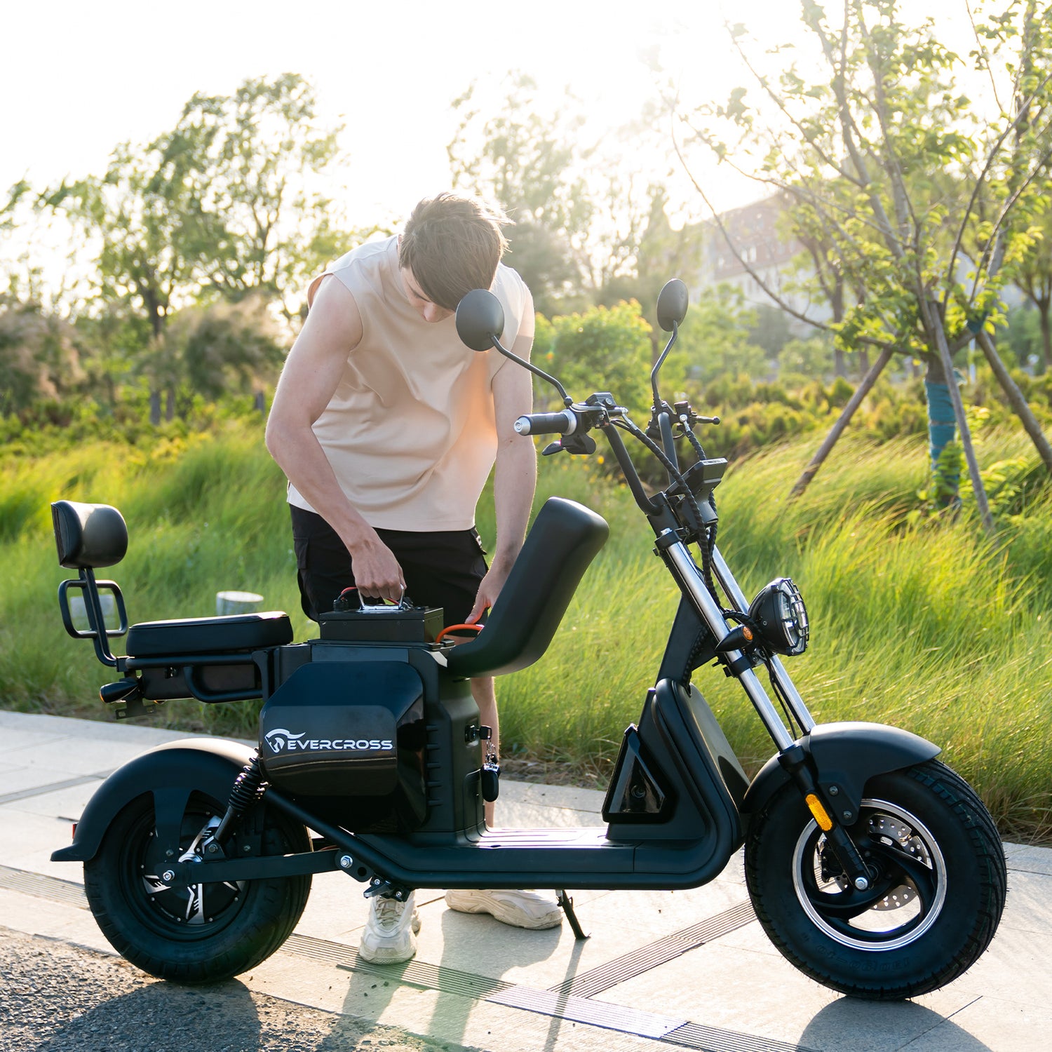 - 85-100 km Reichweite: Mit einem wechselbaren 60V-30 Ah Lithium-Akku ausgestattet, der eine lange Reichweite ermöglicht.