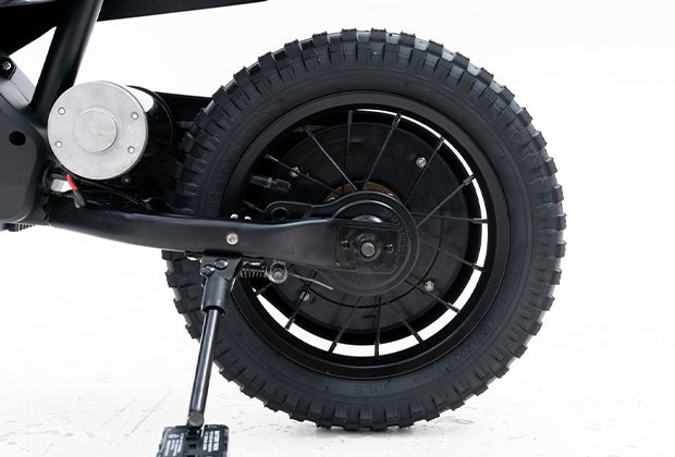 Mit 12-Zoll-Luftreifen und stabilem Stahlrahmen fährt das EV05M ruhig und sicher auf verschiedenen Untergründen. Das durchdachte Bremssystem sorgt für zusätzliche Sicherheit bei jeder Fahrt.
