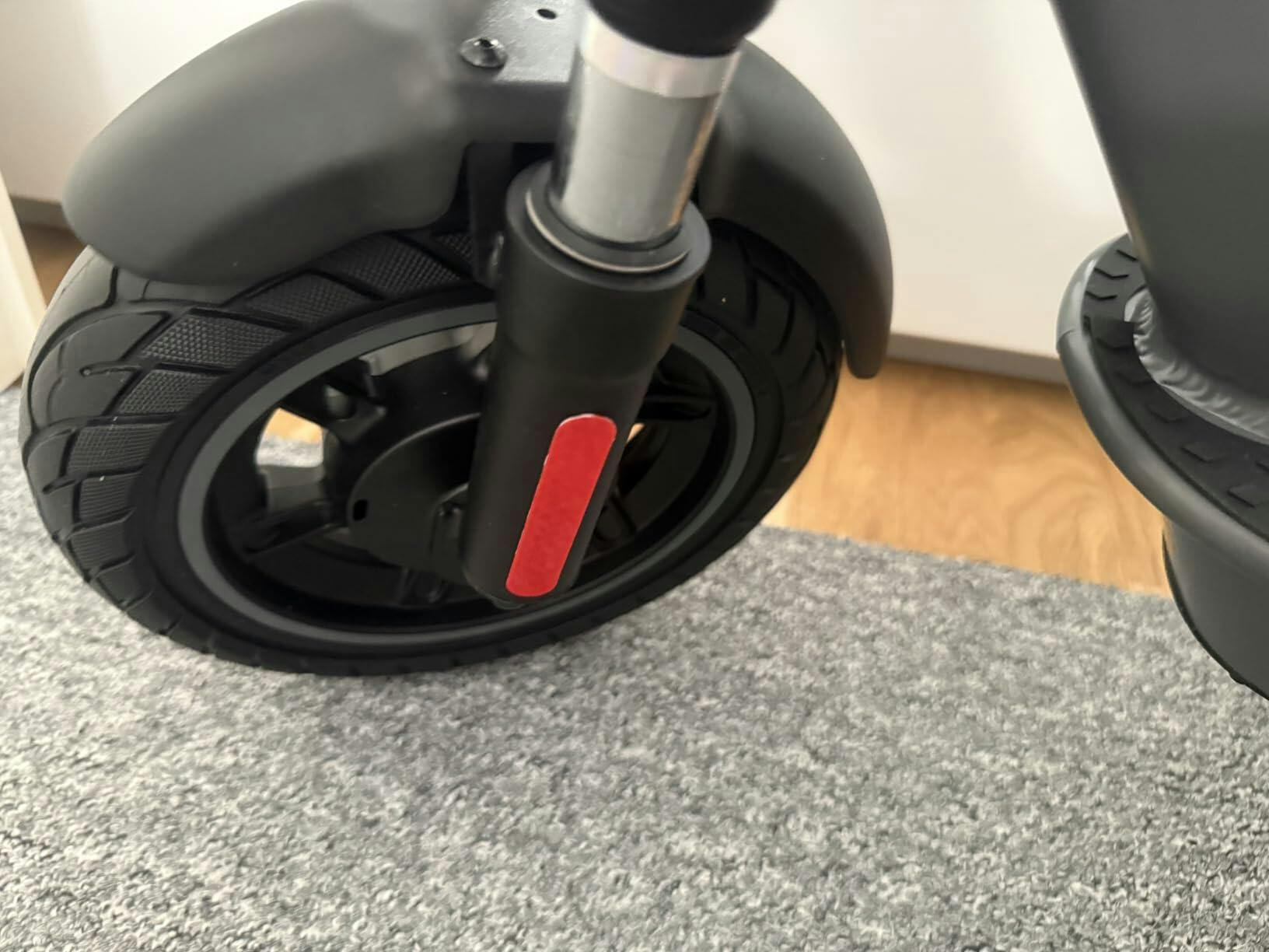 Die Federung und die Reifen bieten einen angenehmen Fahrkomfort, selbst auf leicht unebenen Wegen. Besonders praktisch finde ich auch die Klappfunktion, mit der man den Scooter leicht transportieren oder im Kofferraum verstauen kann.