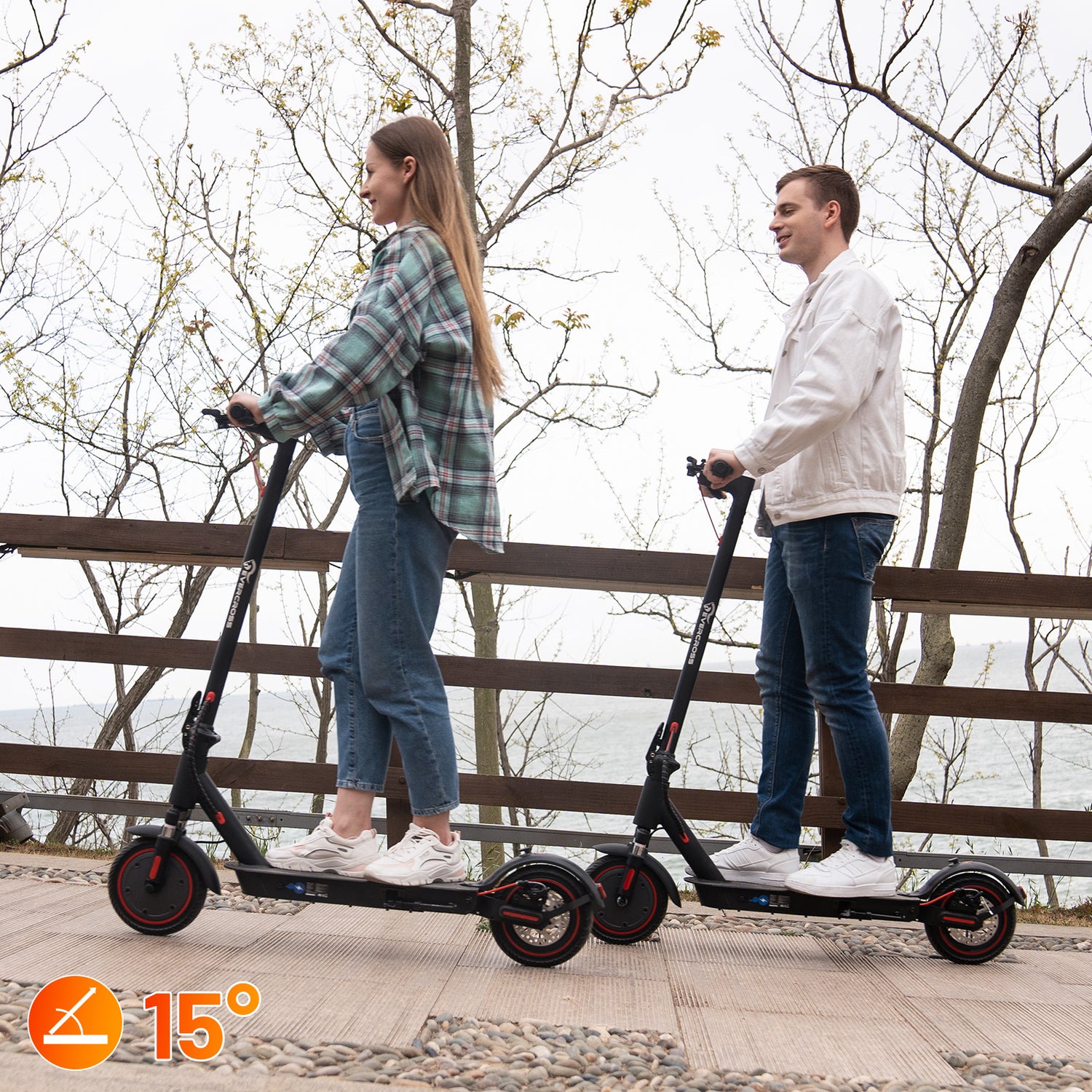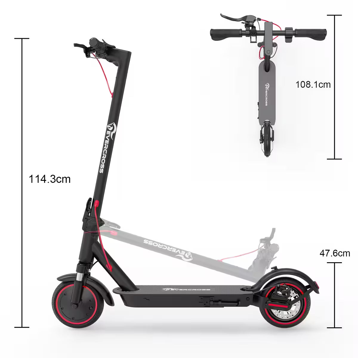 Ausgestattet mit 8,5-Zoll-Vollgummireifen und doppelter Federung (vorne und hinten) federt der EV85F Unebenheiten und unebene Oberflächen effektiv ab und sorgt so für eine komfortable Fahrt in der Stadt. Die Nicht-Null-Startfunktion erfordert einen sanften Schub auf 5 km/h, bevor der Motor aktiviert wird, wodurch eine versehentliche Beschleunigung verhindert wird. Mit einem Gewicht von nur 15 kg und einer kompakten Faltgröße von 108 × 47 × 114 cm lässt er sich leicht transportieren und verstauen – perfekt für öffentliche Verkehrsmittel oder den Kofferraum.