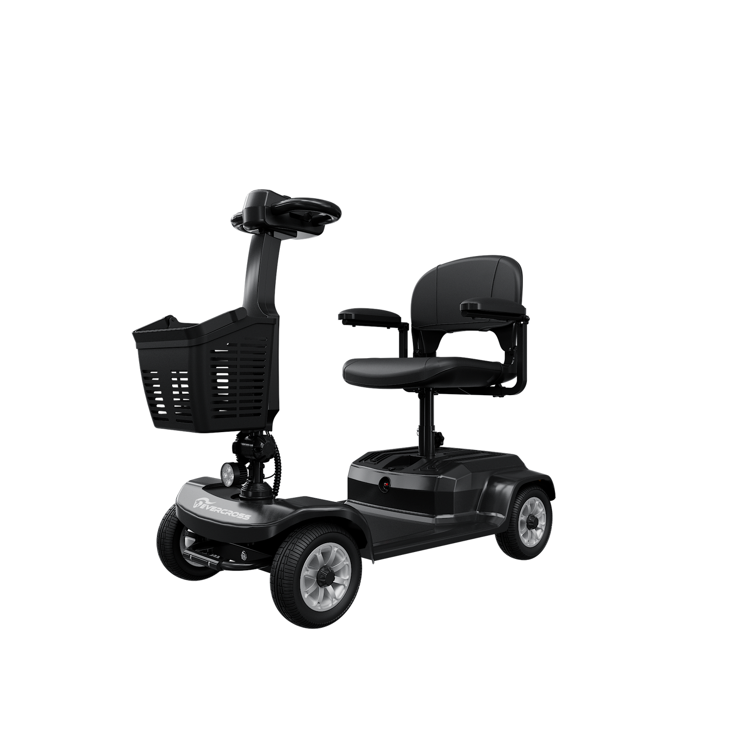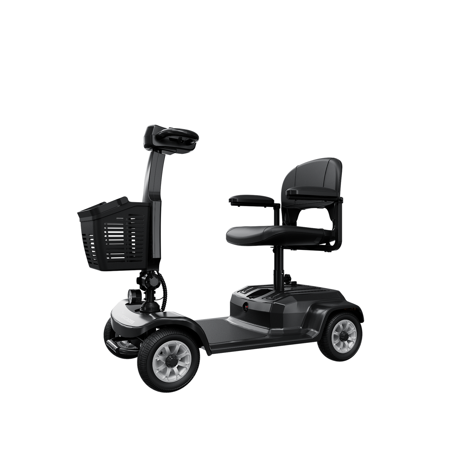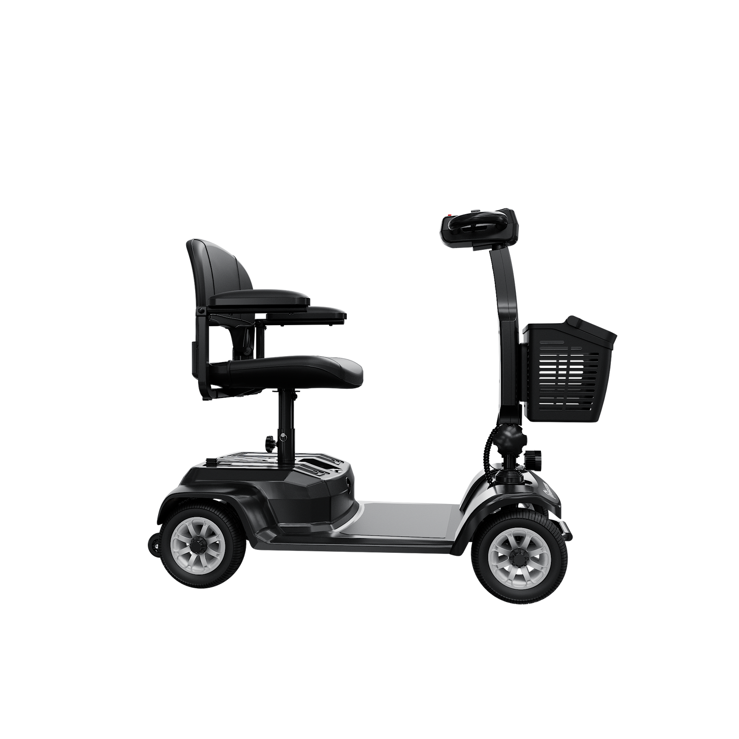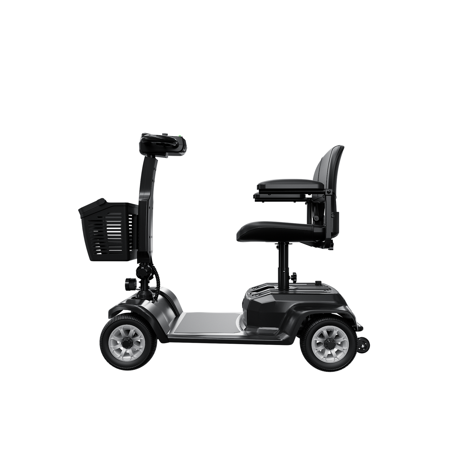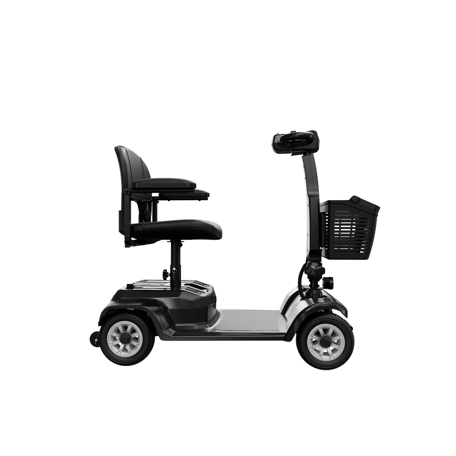 Dieses Elektromobil fährt bis zu 6 km/h und ist damit für Gehwege geeignet. Die 4-Rad-Bauweise sorgt für hohe Stabilität und leichte Kontrolle – auch bei engen Wegen und langsamer Fahrt.