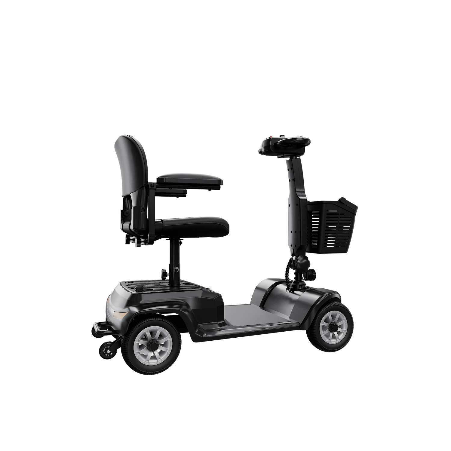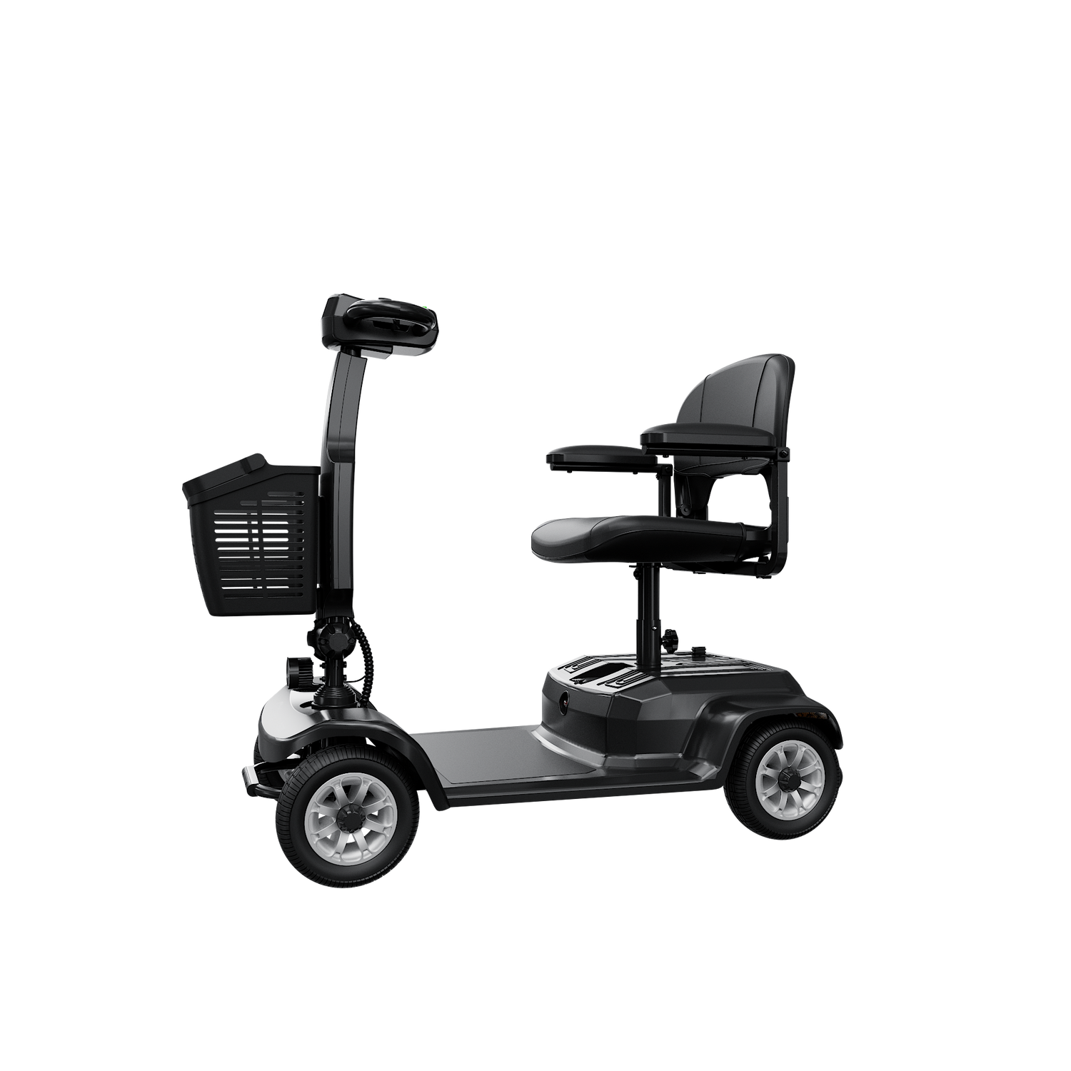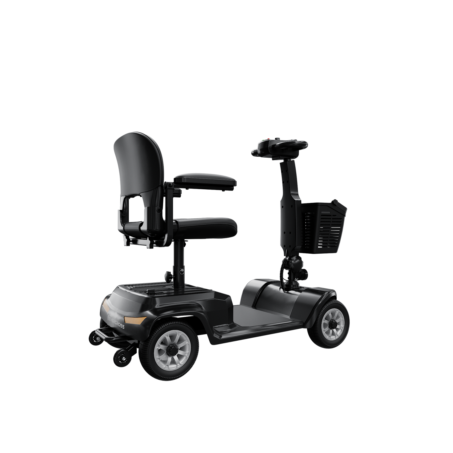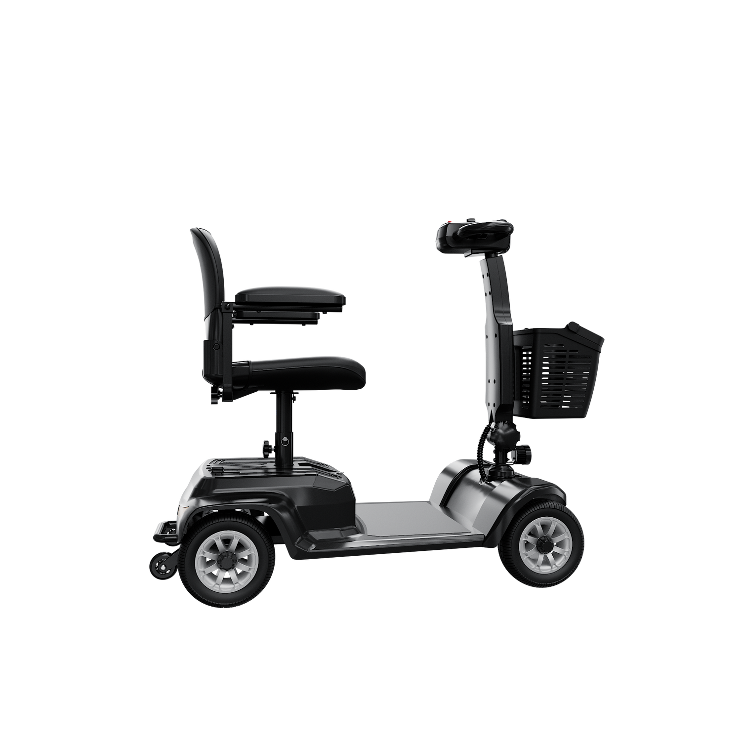 Dieses Elektromobil fährt bis zu 6 km/h und ist damit für Gehwege geeignet. Die 4-Rad-Bauweise sorgt für hohe Stabilität und leichte Kontrolle – auch bei engen Wegen und langsamer Fahrt.