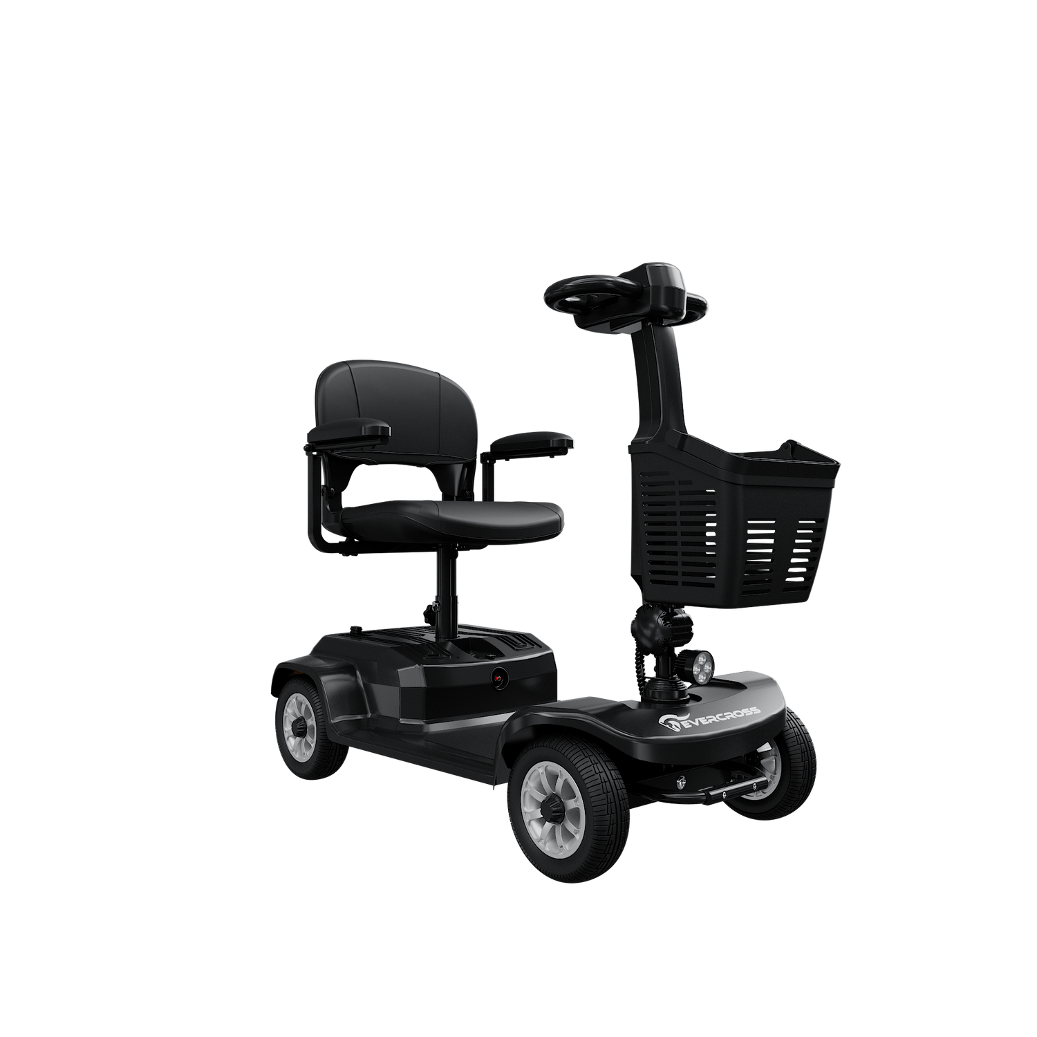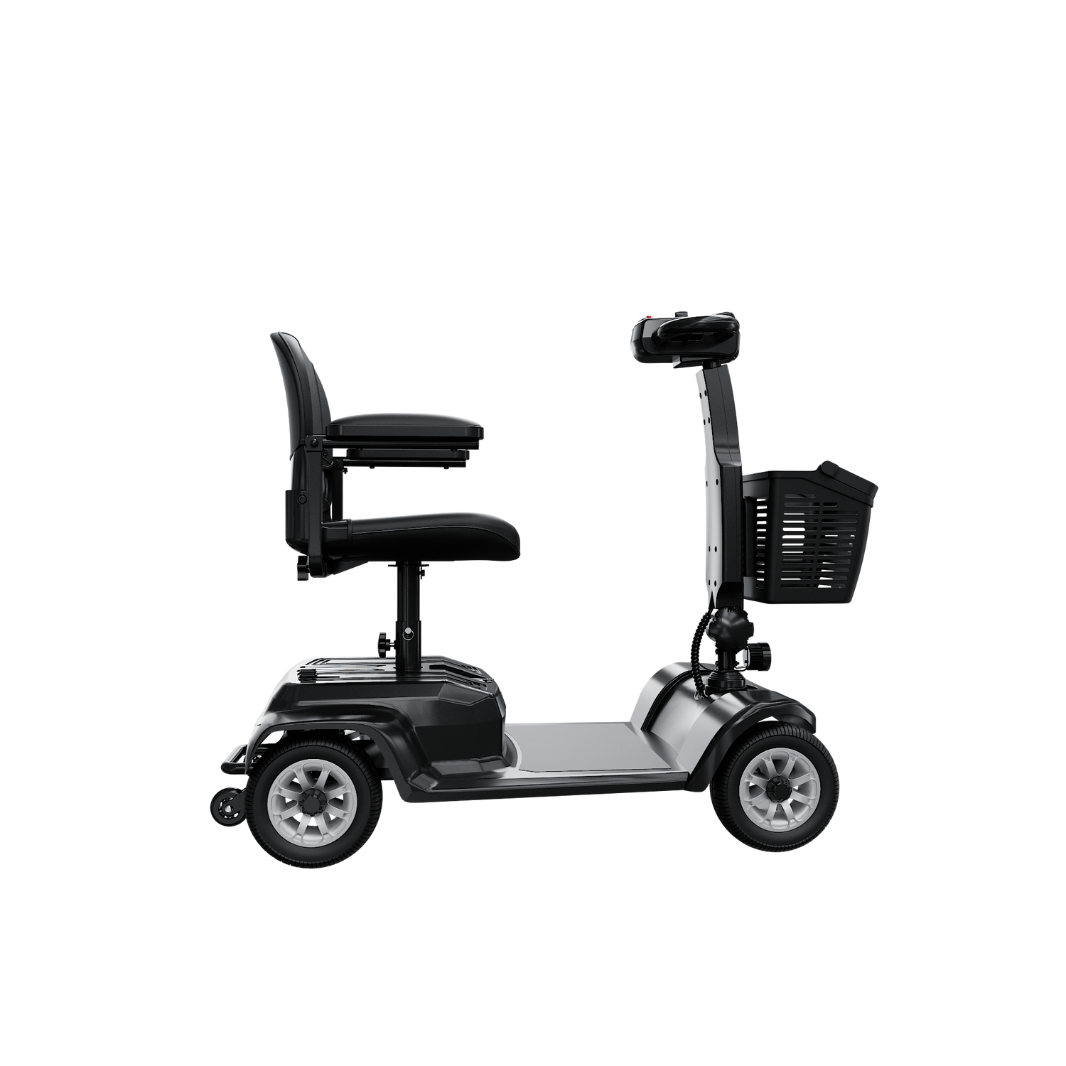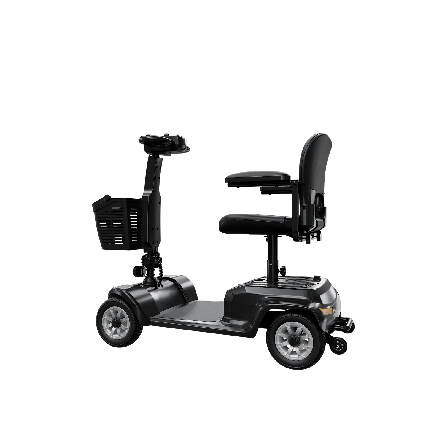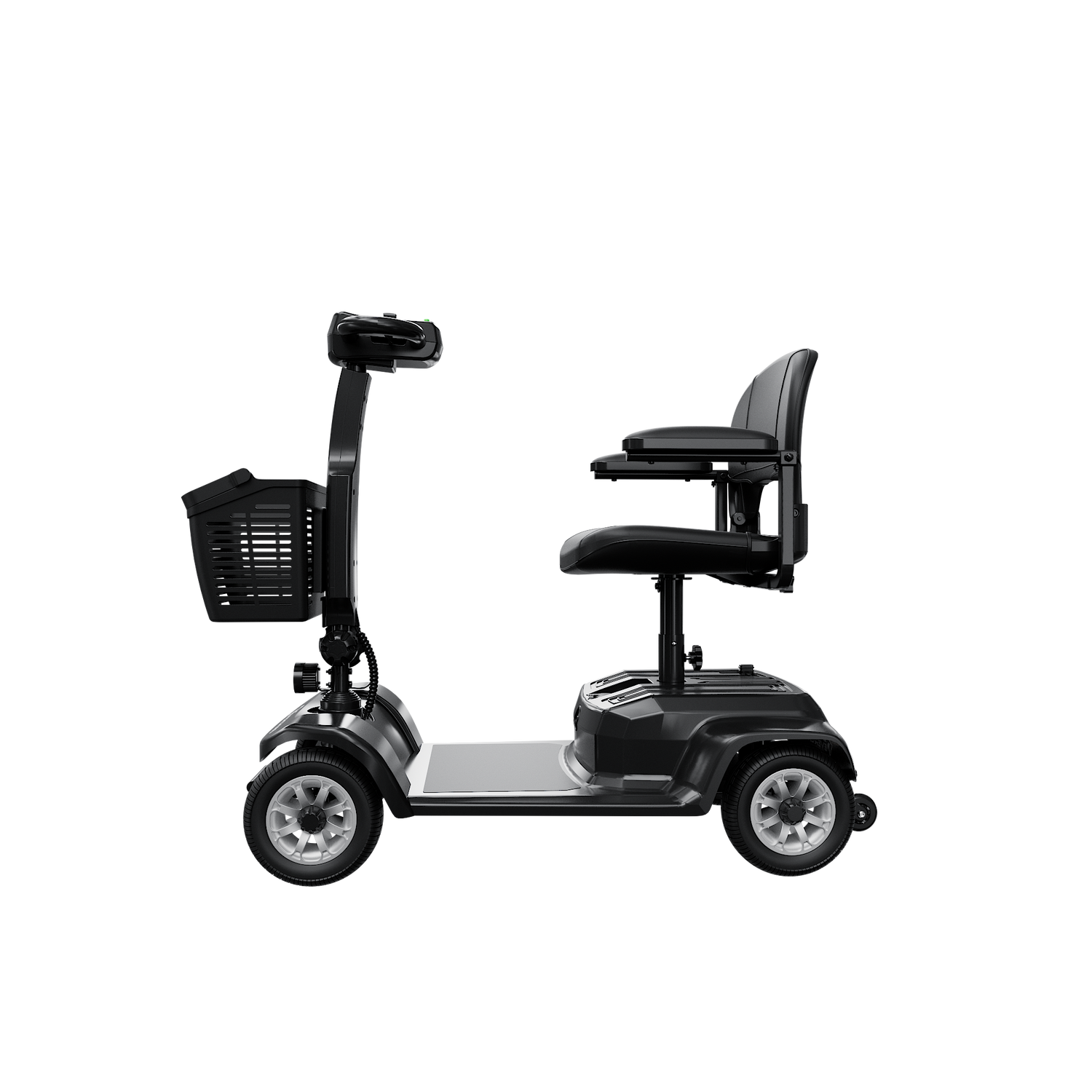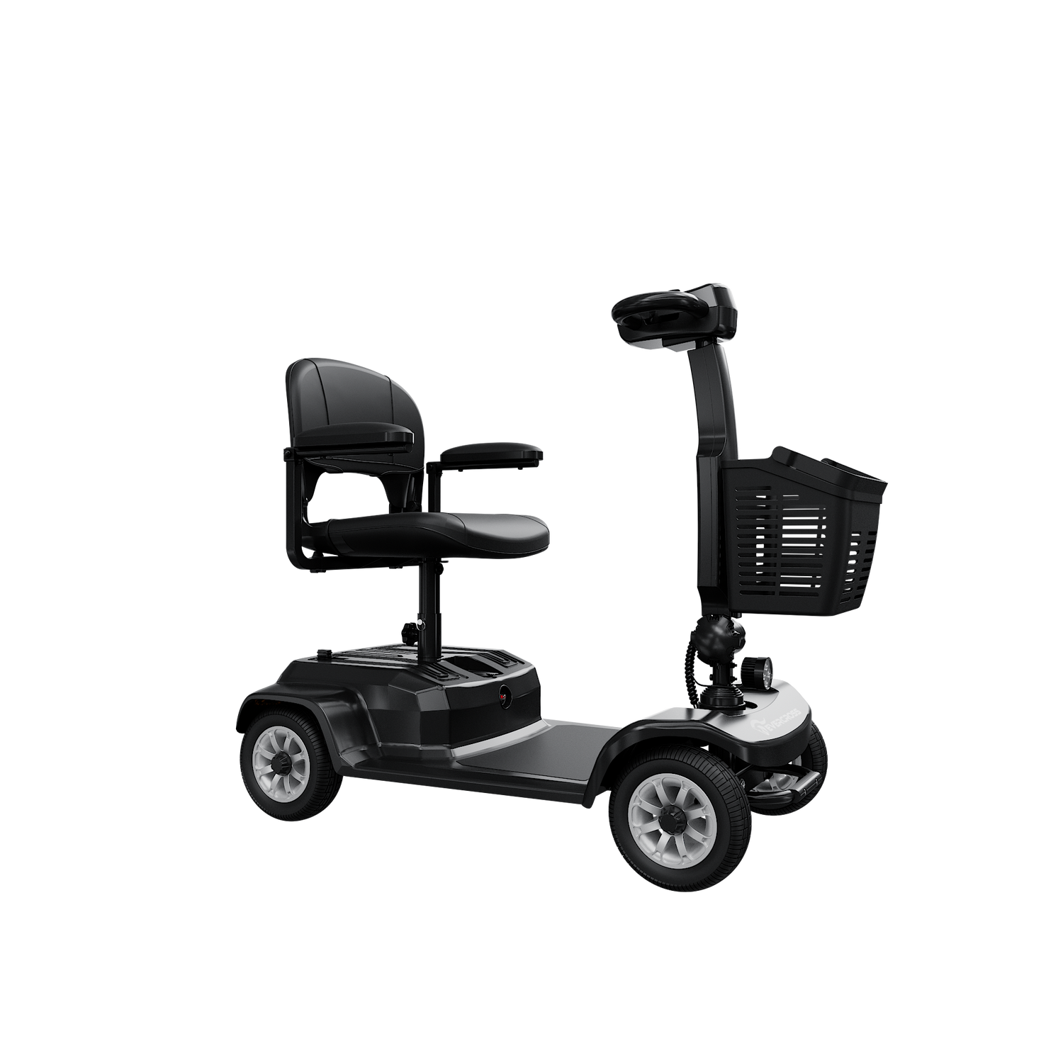 Dieses Elektromobil fährt bis zu 6 km/h und ist damit für Gehwege geeignet. Die 4-Rad-Bauweise sorgt für hohe Stabilität und leichte Kontrolle – auch bei engen Wegen und langsamer Fahrt.