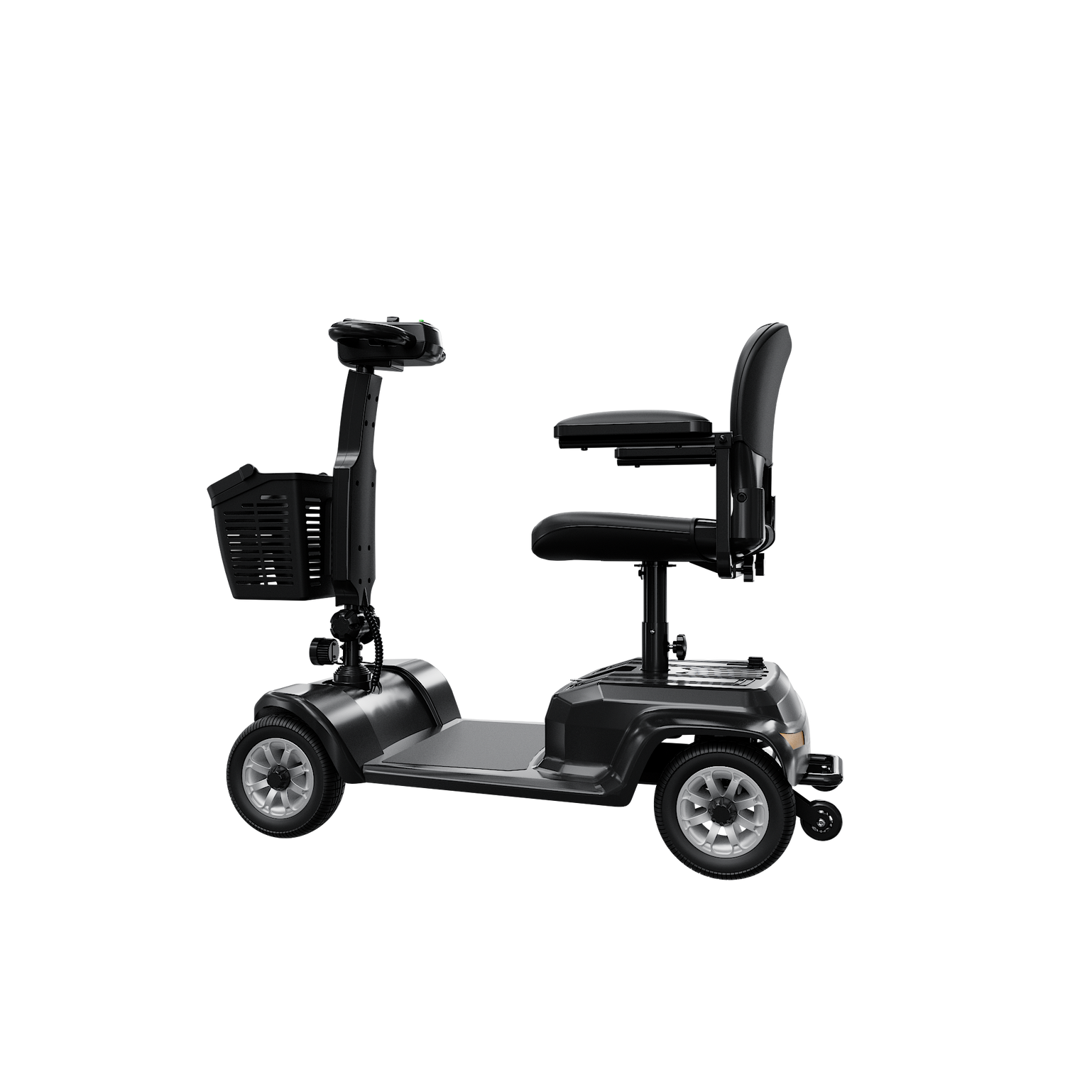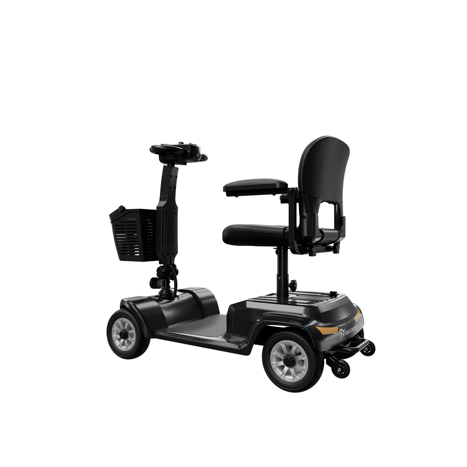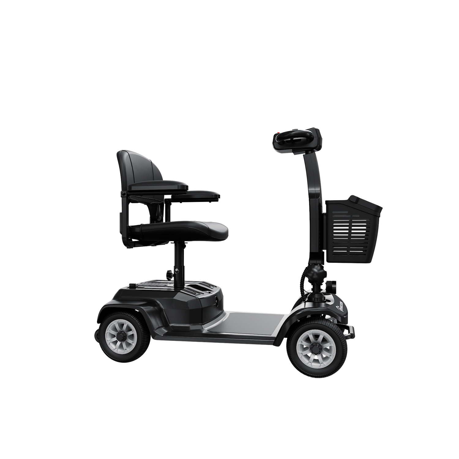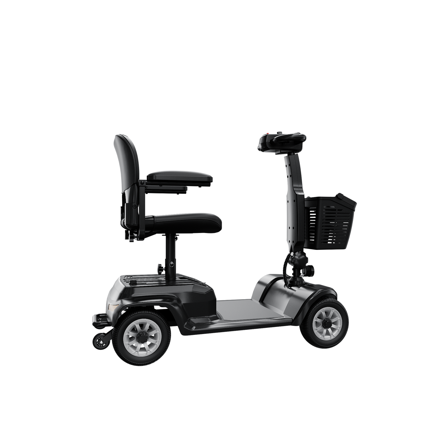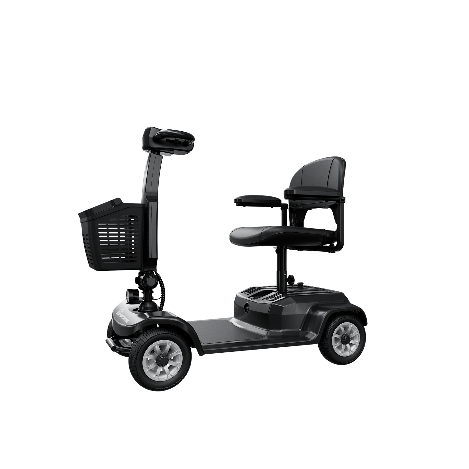 Dieses Elektromobil fährt bis zu 6 km/h und ist damit für Gehwege geeignet. Die 4-Rad-Bauweise sorgt für hohe Stabilität und leichte Kontrolle – auch bei engen Wegen und langsamer Fahrt.