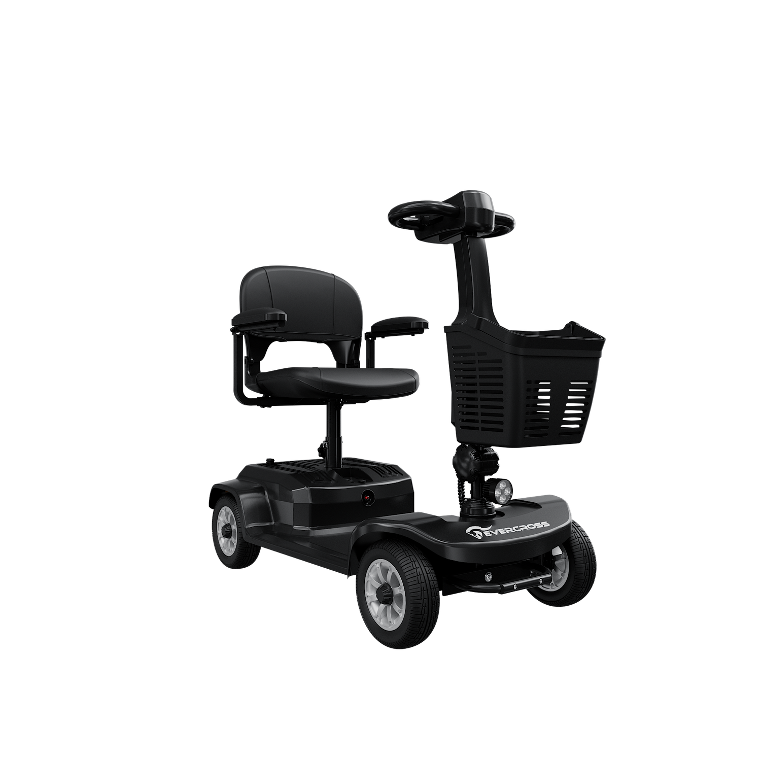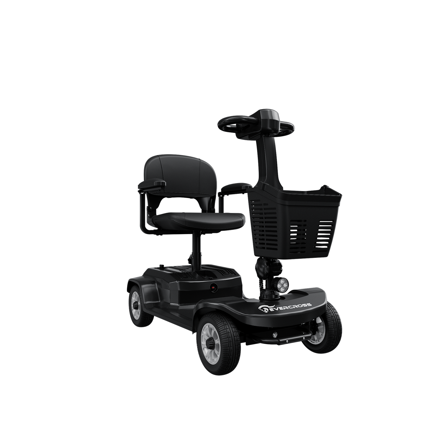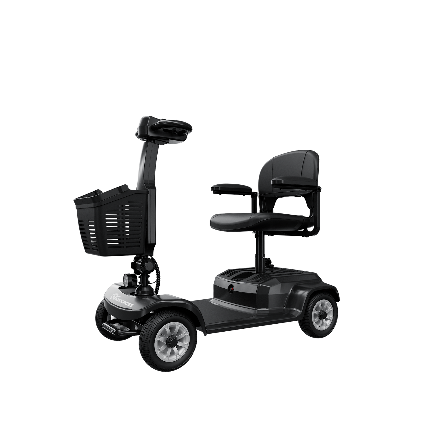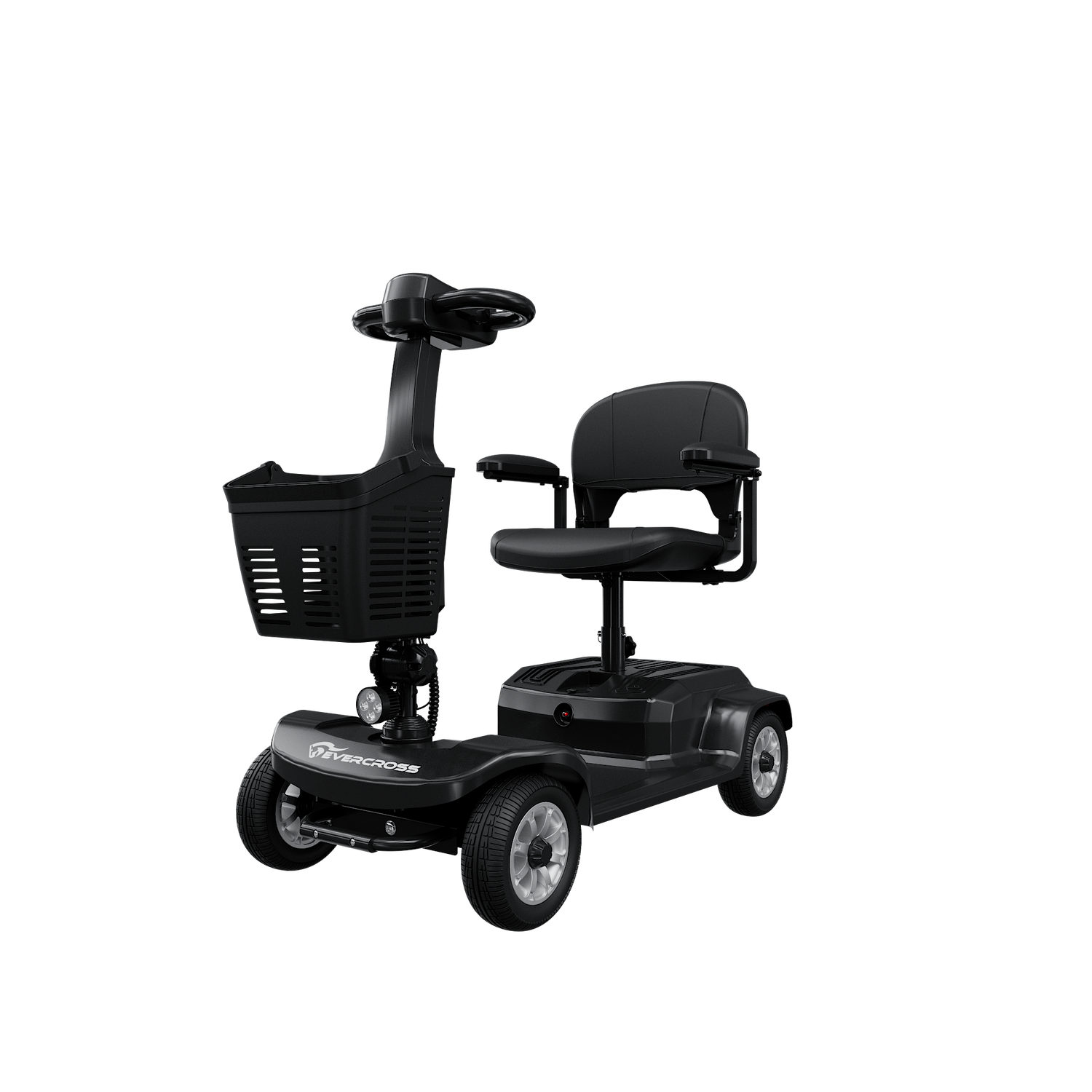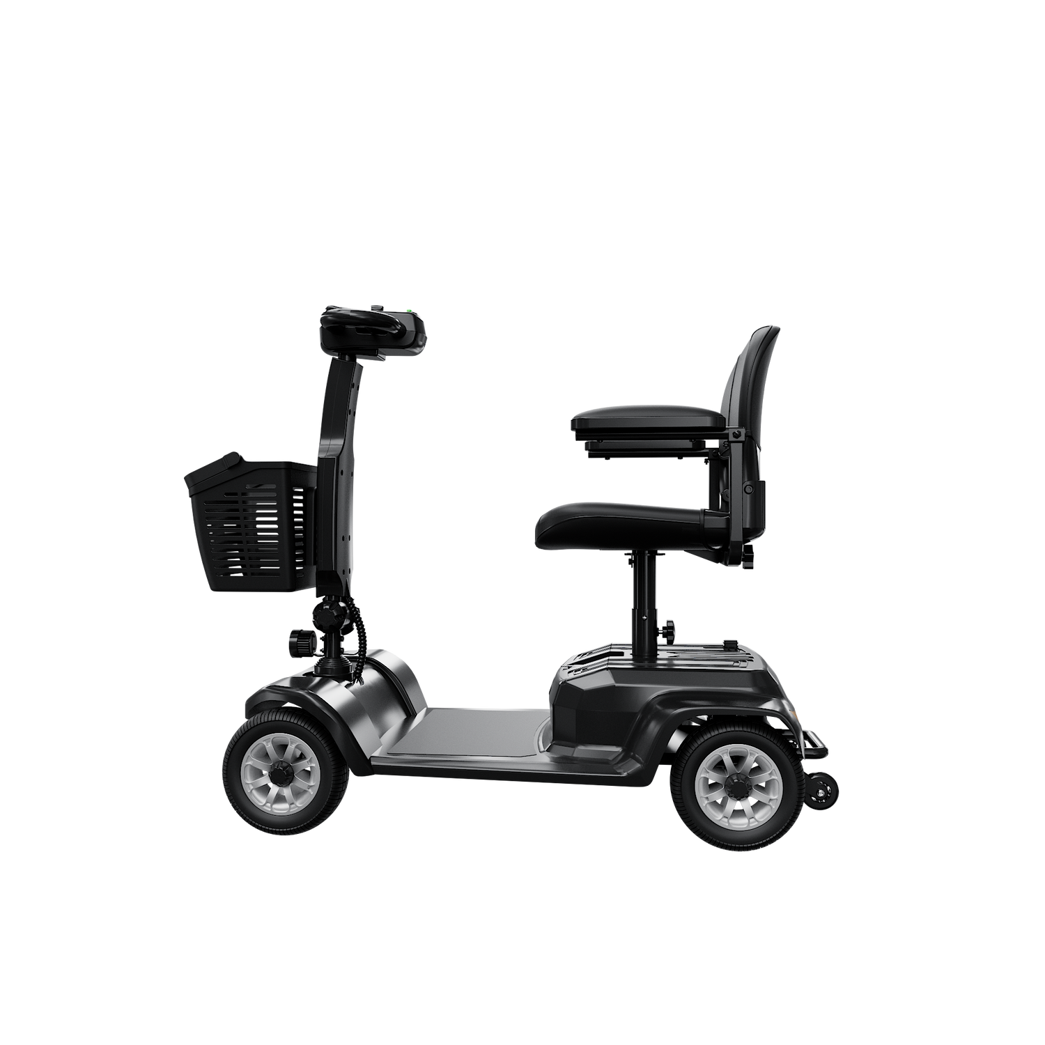 Dieses Elektromobil fährt bis zu 6 km/h und ist damit für Gehwege geeignet. Die 4-Rad-Bauweise sorgt für hohe Stabilität und leichte Kontrolle – auch bei engen Wegen und langsamer Fahrt.