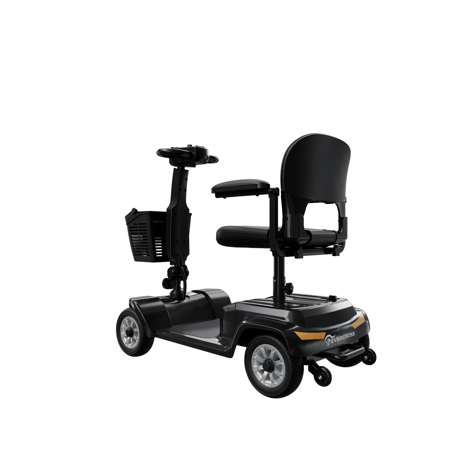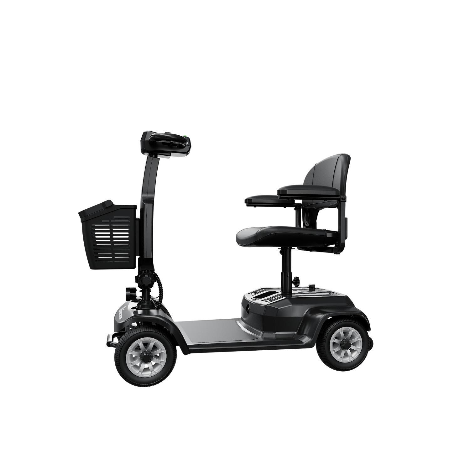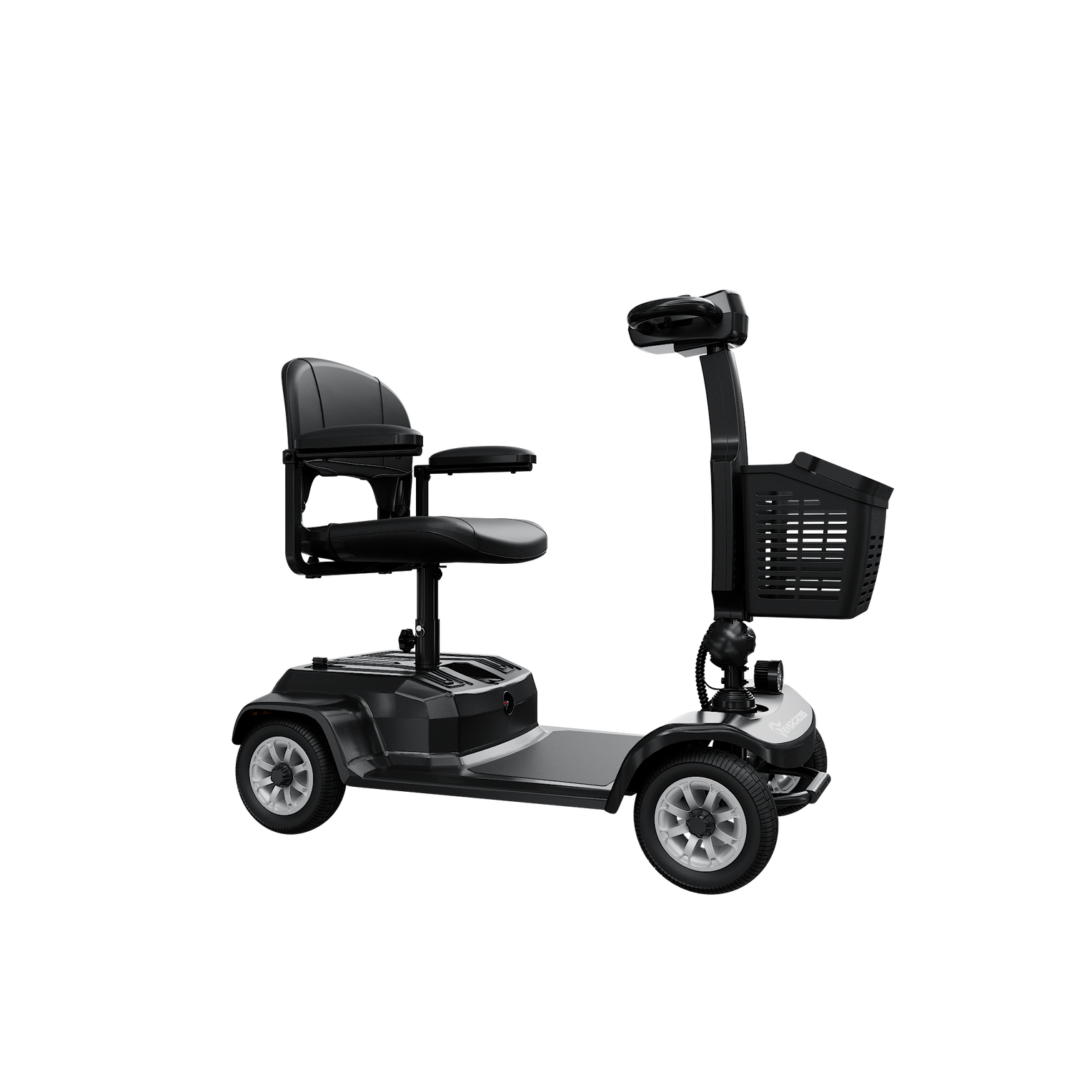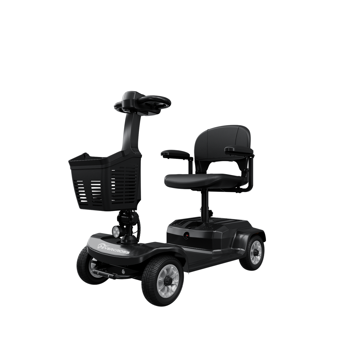 Dieses Elektromobil fährt bis zu 6 km/h und ist damit für Gehwege geeignet. Die 4-Rad-Bauweise sorgt für hohe Stabilität und leichte Kontrolle – auch bei engen Wegen und langsamer Fahrt.