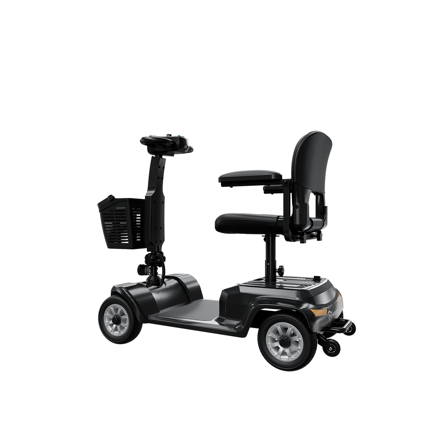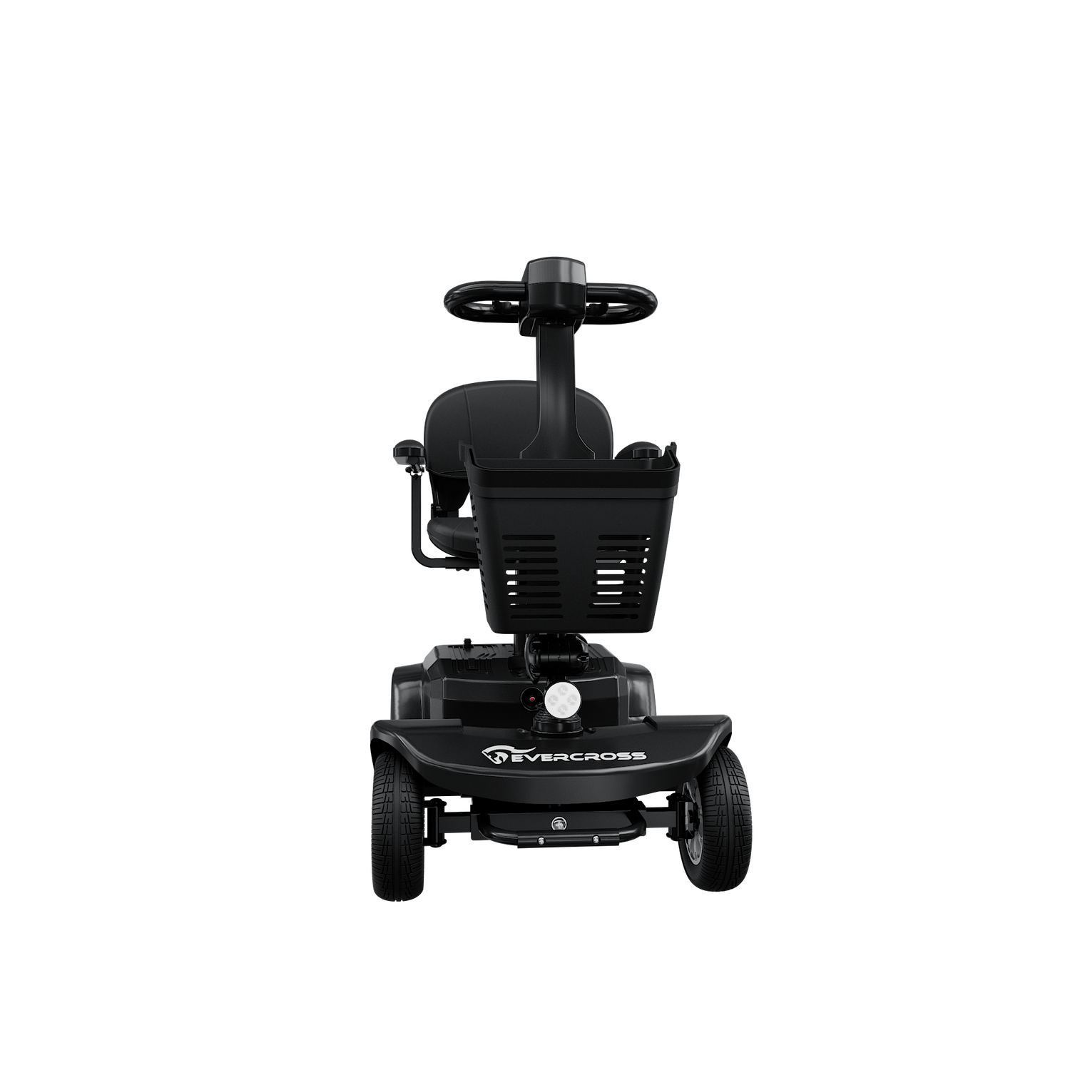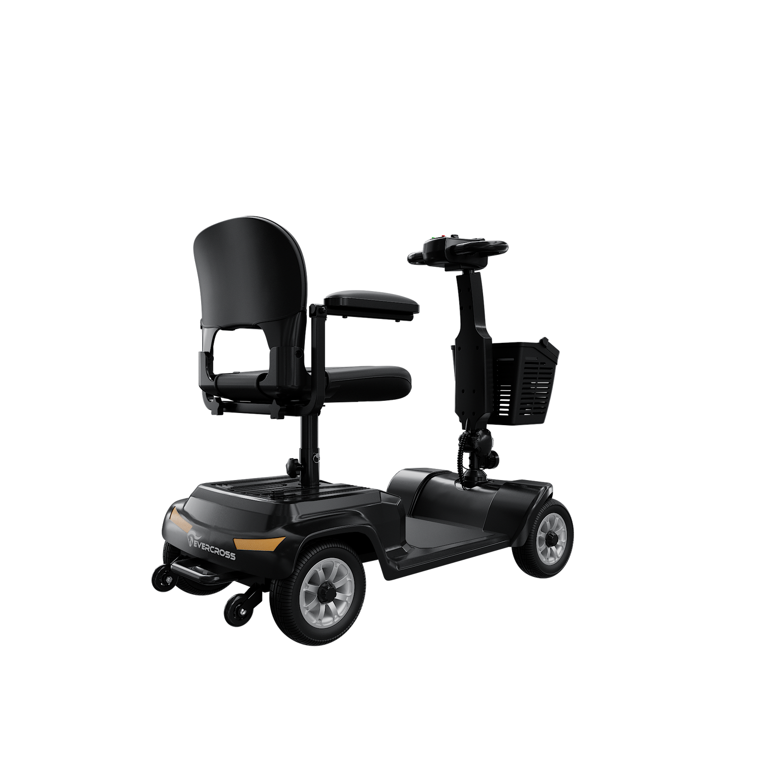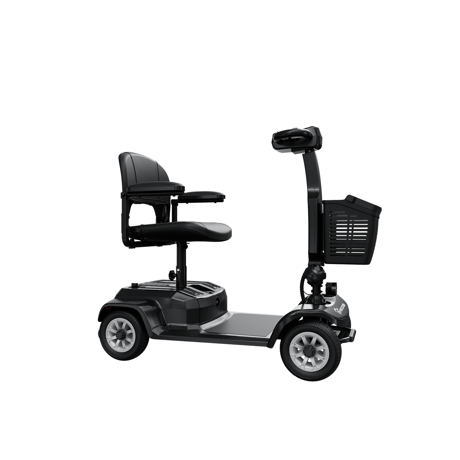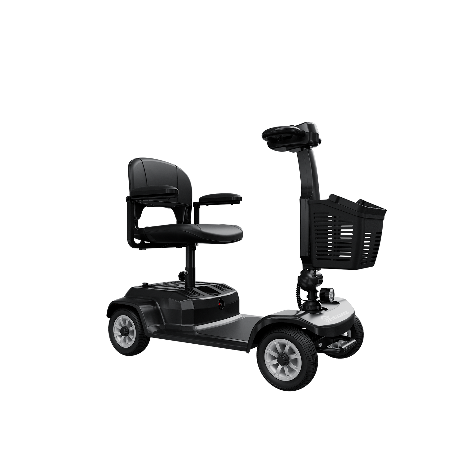Dieses Elektromobil fährt bis zu 6 km/h und ist damit für Gehwege geeignet. Die 4-Rad-Bauweise sorgt für hohe Stabilität und leichte Kontrolle – auch bei engen Wegen und langsamer Fahrt.