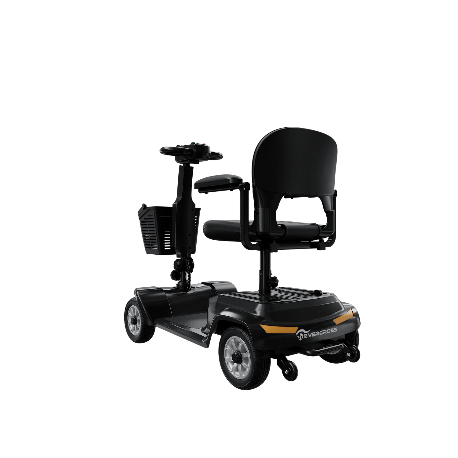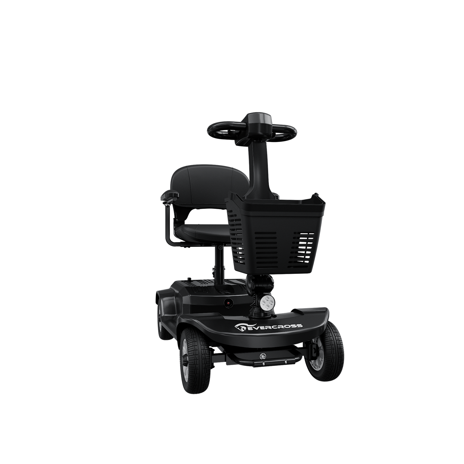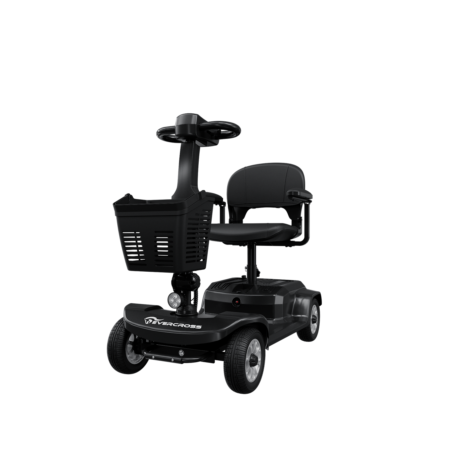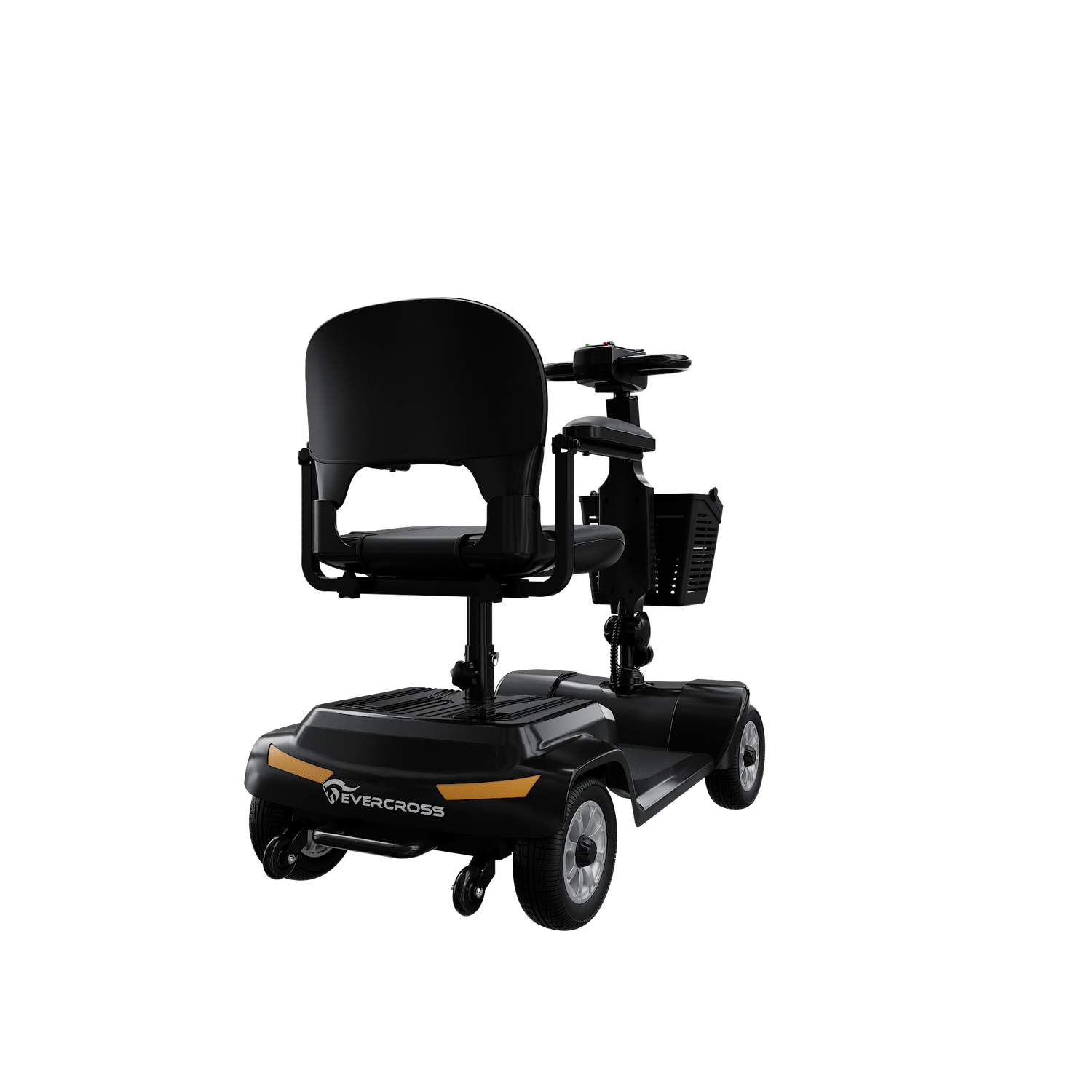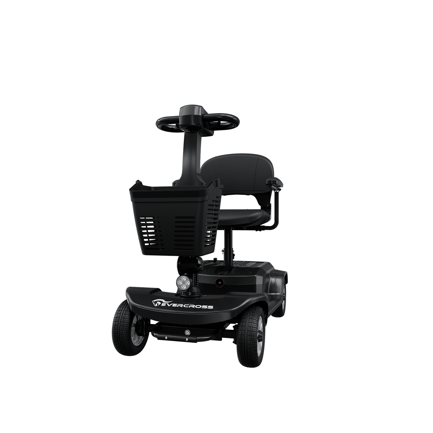 Dieses Elektromobil fährt bis zu 6 km/h und ist damit für Gehwege geeignet. Die 4-Rad-Bauweise sorgt für hohe Stabilität und leichte Kontrolle – auch bei engen Wegen und langsamer Fahrt.