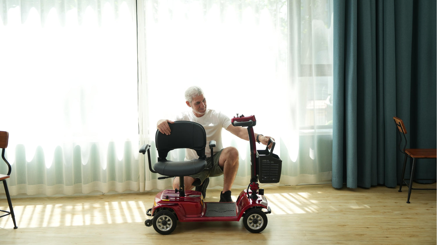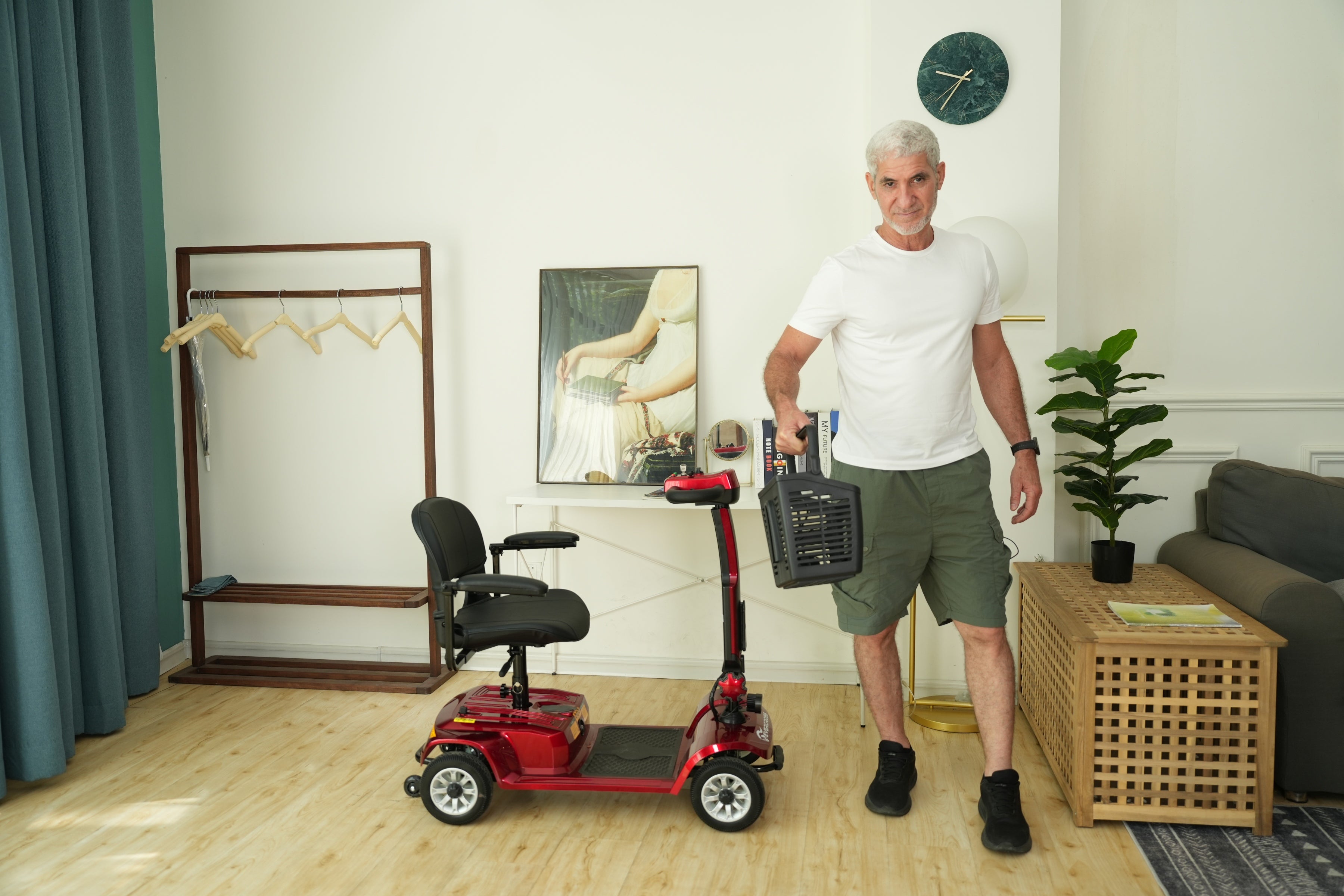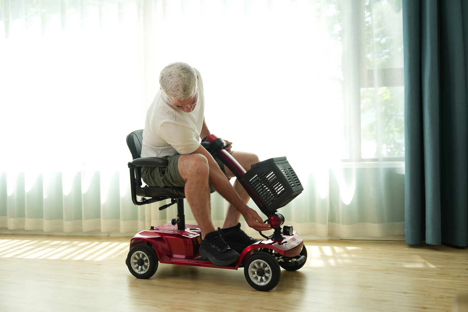 Dieses Elektromobil fährt bis zu 6 km/h und ist damit für Gehwege geeignet. Die 4-Rad-Bauweise sorgt für hohe Stabilität und leichte Kontrolle – auch bei engen Wegen und langsamer Fahrt.